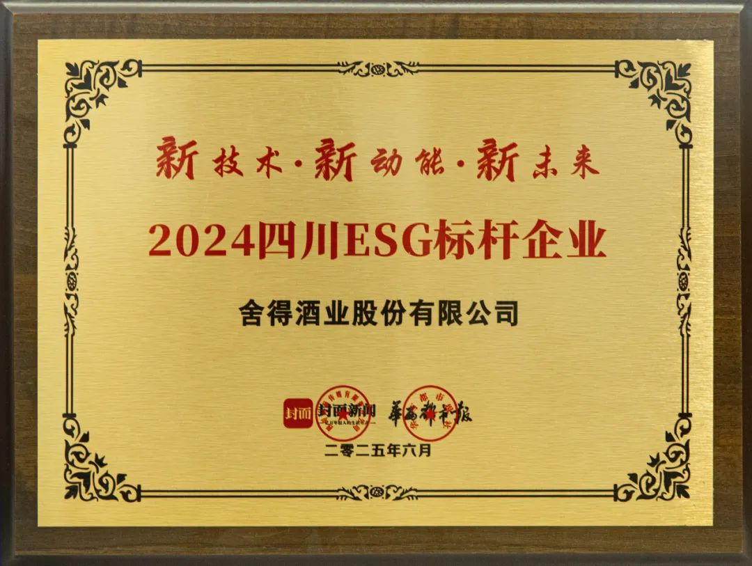 6月30日,由封面新闻、华西都市报主办的“新技术·新动能·新未来”致敬2024四川经济影响力人物活动在成都举办。舍得酒业荣获“2024四川ESG标杆企业”称号。未来,舍得酒业将继续践行ESG理念,坚定绿色发展,向成为文化领先、生态可持续、创新驱动的世界一流白酒企业迈进。