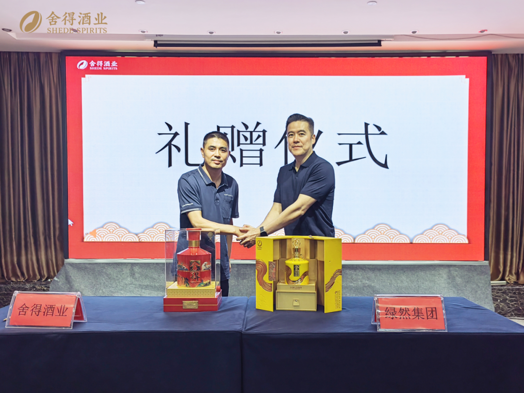 会晤期间,舍得酒业和绿然科技集团正式签署战略合作协议,双方将立足四川射洪,依托复星的全球资源赋能和绿然的科技外贸网络势能,加速推动中国白酒与文化科技共同出海。在双方团队的共同见证下,王勇代表舍得酒业向绿然科技集团赠送舍得老酒作为纪念,本次战略合作签署在热烈友好的氛围中落下帷幕。