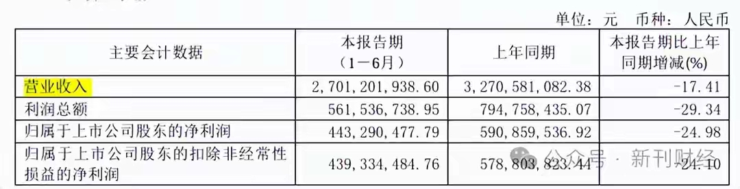 具体来看,今年该公司上半年的财务数据显示,舍得酒业今年上半年营收为27.01亿元,同期下降了17.41%,归母净利润与扣非净利润分别为4.43亿元和4.39亿元,同比降幅均超过24%,业绩下行趋势较为明显。