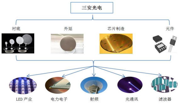 相比LED芯片业绩承压,报告期内,三安光电集成电路业务稳步推进,实现销售收入 15.22 亿元,同比增长 4.14%;因碳化硅产能的持续释放,成本降低,毛利率有所提高。
