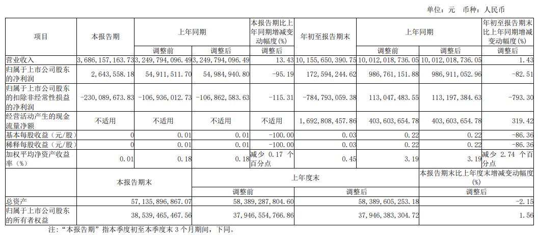 今年前三季度,三安光电实现营业收入101.56亿元,同比增长1.43%;归属于上市公司股东的净利润1.73亿元,同比下滑82.51%;归属于上市公司股东的扣除非经常性损益的净利润-7.85亿元,同比下滑793.30%;经营活动产生的现金流量净额16.93亿元,同比增长319.42%。