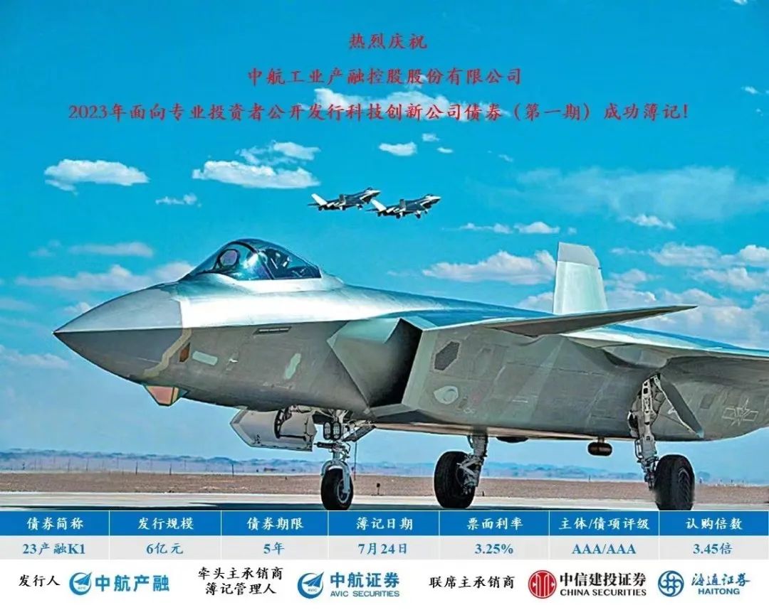近日,由中航证券牵头主承销和簿记管理人的“中航产融2023年公开发行科技创新公司债券(第一期)”成功发行,发行规模6亿元,票面利率3.25%,债券期限5年,全场倍数3.45倍,是中航产融首只五年期科创债券。