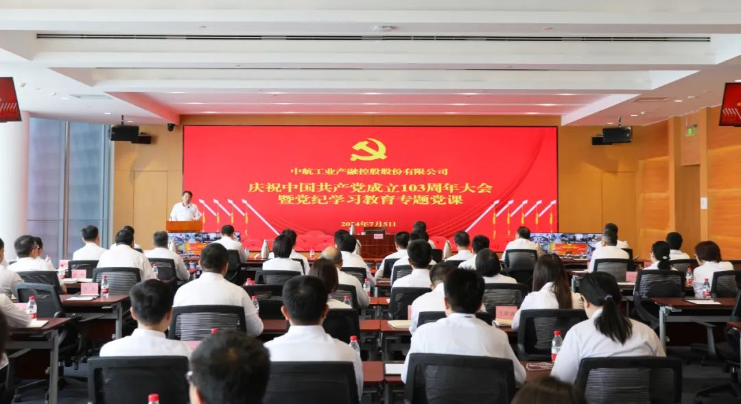7月5日,中航产融在京召开庆祝中国共产党成立103周年大会,深入学习贯彻习近平总书记关于党的建设的重要思想,以及集团公司有关会议精神,党委书记讲授党纪学习教育专题党课。大会号召中航产融各级党组织和广大党员干部聚焦推动产业金融高质量发展,以铁的纪律为保障,进一步统一思想、树牢信心、凝心聚力、攻坚克难,为建设现代航空工业体系、实现航空强国、金融强国目标贡献力量。
