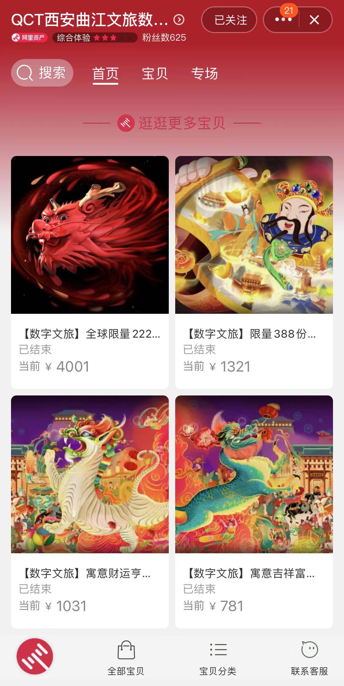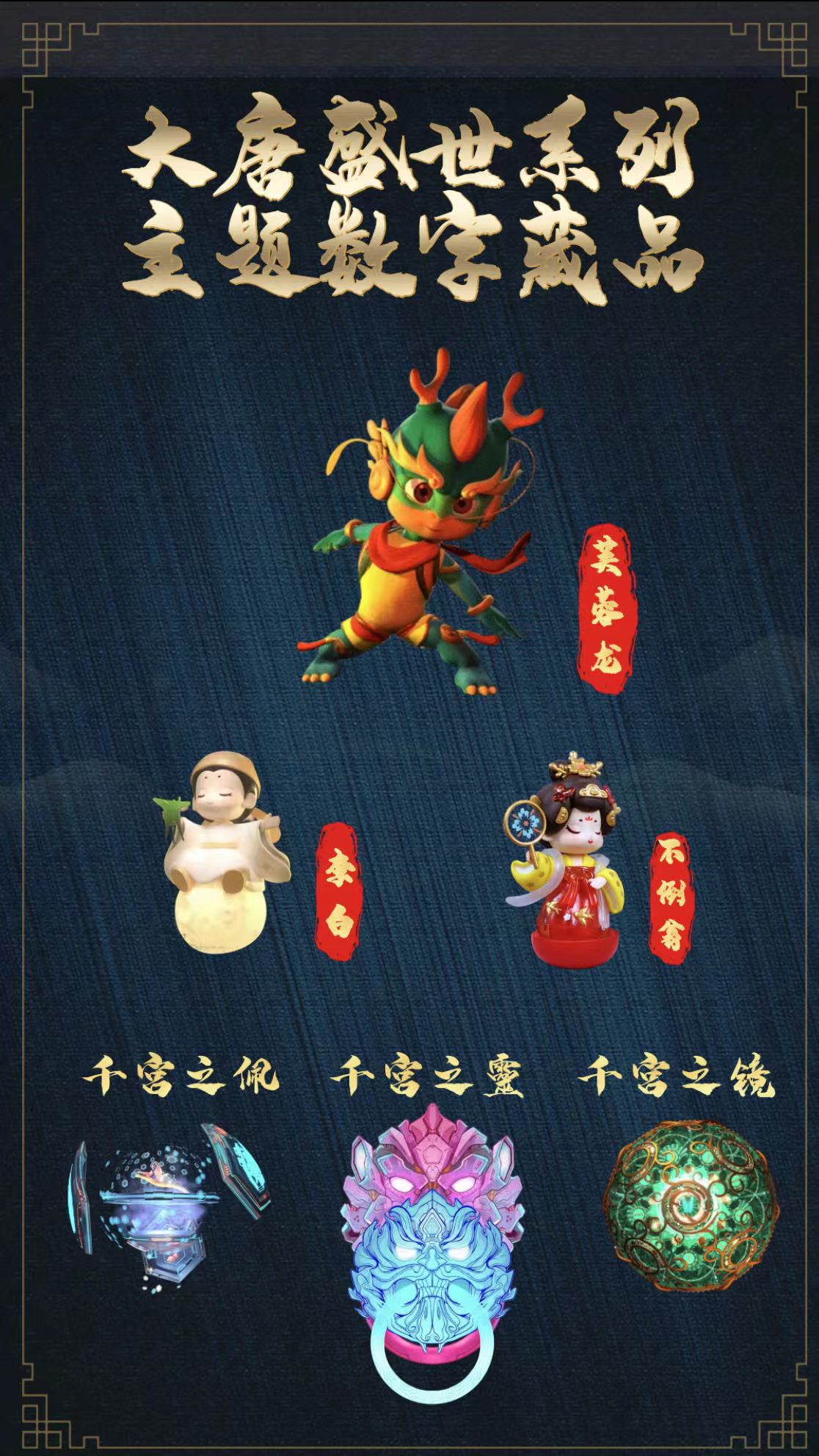 同时,继旗下景区西安城墙于去年11月在阿里拍卖平台发行数字藏品后,今年2月起,曲江文旅发售了龙抬头系列、“大唐芙蓉园·芙蓉龙”数字藏品,旗下景区大明宫发售了“〇宇宙”“千宫”系列数字藏品,大唐不夜城发售了不倒翁小姐姐“花开盛世”等数字藏品。