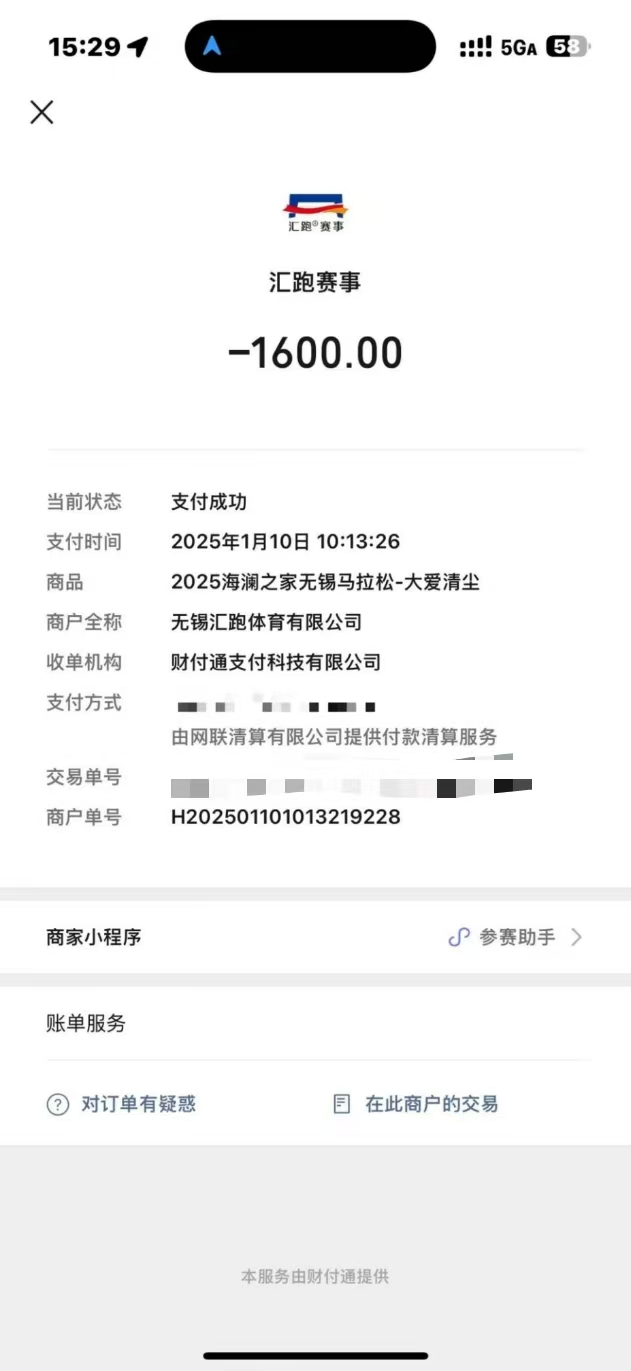 一位参与2025年无锡马拉松慈善跑的跑者向记者出示了她的收款信息,收款方为无锡汇跑。