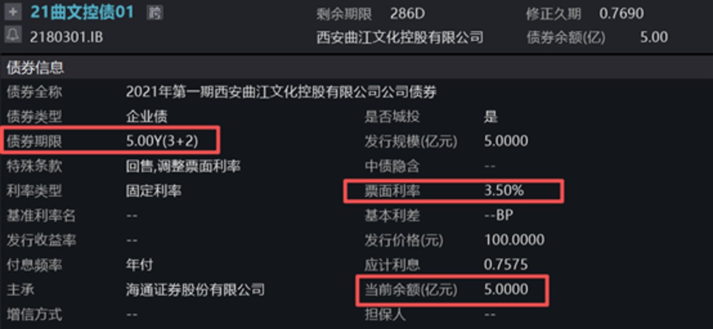 21曲文控债01(2180301.IB)、21曲控一(152980.SH)到期日都是2026年07月29日,最新票面利率3.50%。