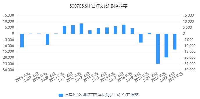 虽然手握优质的旅游资源,但公司并没能充分将其转化。从过往业绩来看,曲江文旅近年来业绩下滑明显,2020至2024年,公司归母净利润出现4年亏损,且最近3年连续亏损,亏损额5.75亿元。扣非净利润方面,公司已连续5年亏损,亏损总额超7.8亿元。从亏损数额来看,有收窄的趋势。
