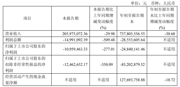 从第三季度来看,单季度公司营收和净利均大幅下滑,公司实现营收2.06亿元,同比下滑29.98%,归母净利润亏损1095.95万元,同比由盈转亏下滑277.01%。