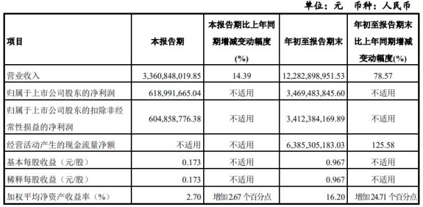 集微网消息 10月29日,彩虹股份发布第三季度报告称,2021年7-9月,公司实现营业收入为33.61亿元,同比增长14.39%;归属于上市公司股东的净利润为6.19亿元,实现扭亏为盈。