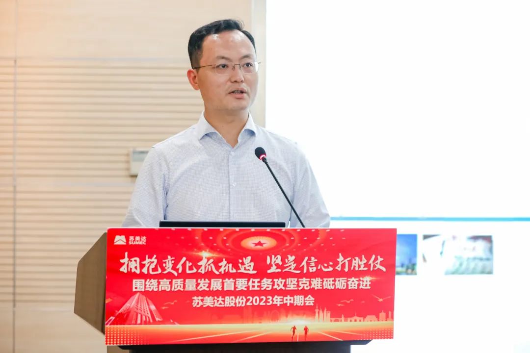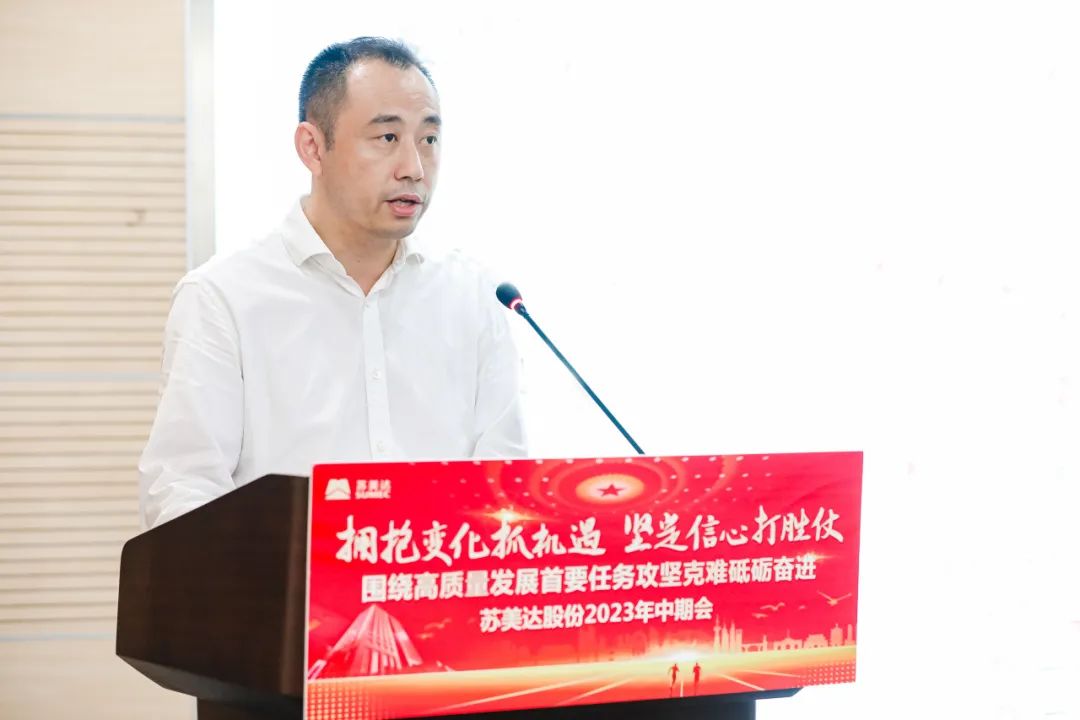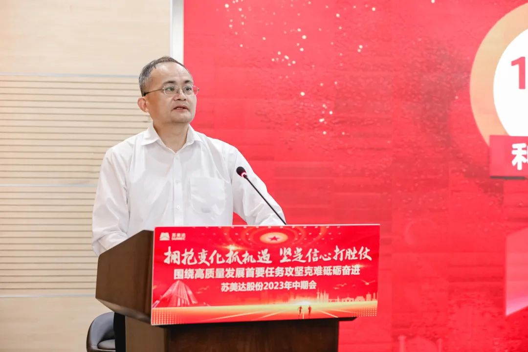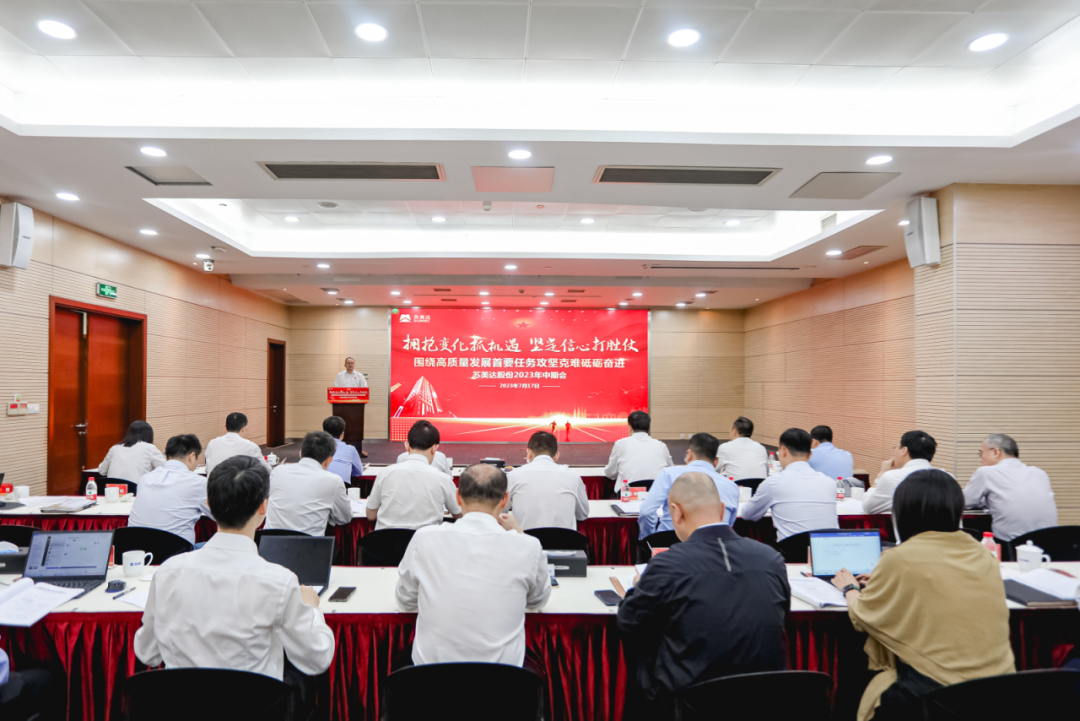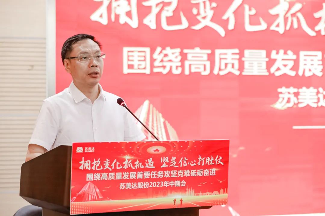 7月17日,苏美达股份有限公司(以下简称苏美达)召开2023年中期会,总结复盘公司上半年生产经营情况,明辨内外形势,明晰全年任务,部署下半年重点工作,动员全体干部职工进一步坚定信心、拥抱变化,围绕中心任务攻坚克难、砥砺奋进,以实干实效彰显新时代央企新作为。公司领导、各子公司及总部职能部门总助以上人员线下参会。国机集团第二监督办公室,公司外部董事、监事及其他干部职工在线参会。