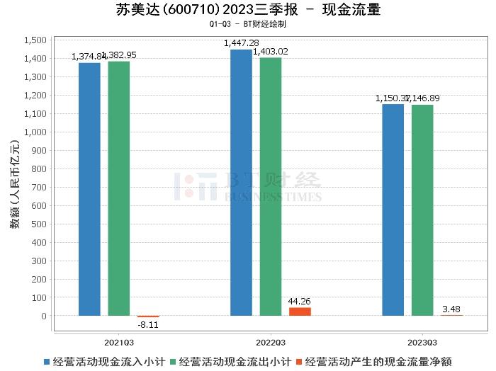 在现金流量方面,经营活动产生的现金流量净额在年初至本报告期末为3.48亿元,相比上年同期的44.26亿元有所下降。经营活动现金流入小计为1150.37亿元,较上年同期的1447.28亿元有所减少。经营活动现金流出小计为1146.89亿元,相比上年同期的1403.02亿元有所减少。