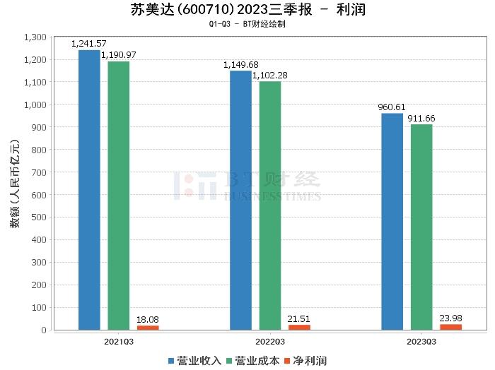 在利润方面,苏美达的营业收入在年初至本报告期末为960.61亿元,相比上年同期的1149.68亿元有所下降。营业利润为28.32亿元,较上年同期的26.99亿元有所增长。营业成本为911.66亿元,相比上年同期的1102.28亿元有所减少。净利润为23.98亿元,较上年同期的21.51亿元有所增长。