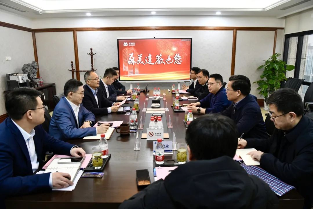 3月6日上午,连云港市委常委、经开区党工委书记商振江一行到访苏美达,苏美达党委书记、董事长杨永清接待商振江一行。连云港市经开区常务副主任王玉祥、副主任曹波;苏美达党委委员、副总经理辛中华参加座谈交流。