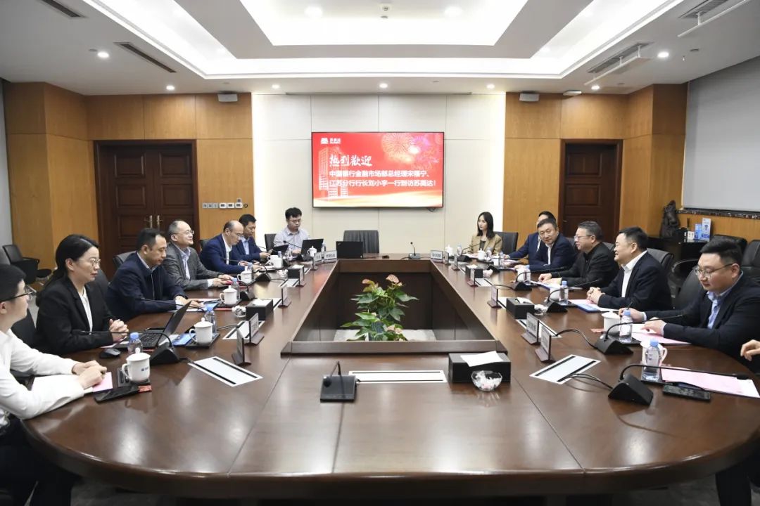 中国银行江苏省分行副行长吴骏、金融市场部、分行营业部;公司财务资产部有关同志参加座谈交流。