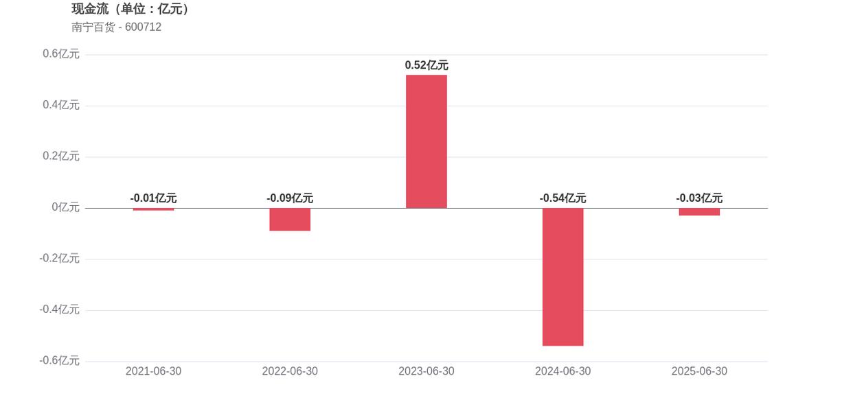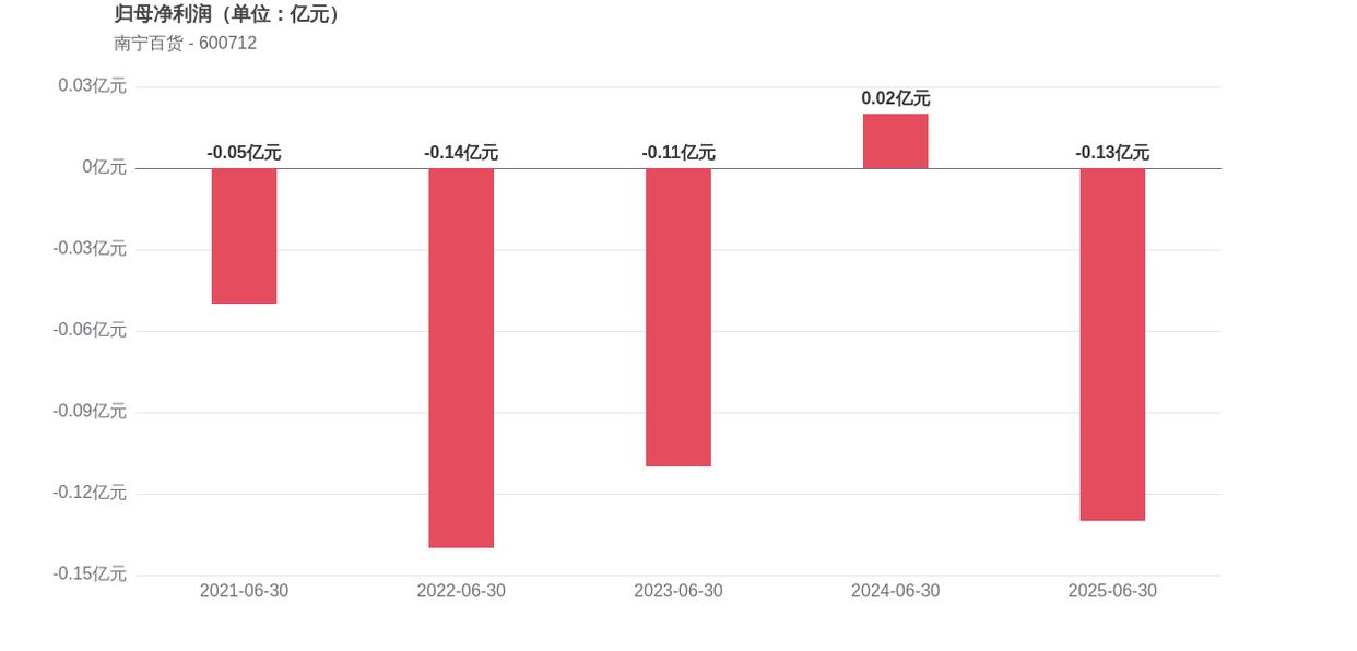 在2025年上半年,南宁百货的经营业绩承压明显,营业收入2.80亿元,同比下滑2.32%,归母净利润为-0.13亿元,同比下滑653.31%。