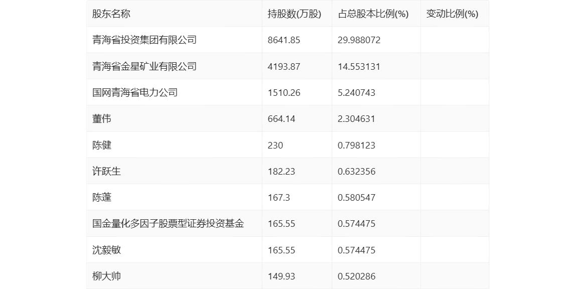 值得注意的是,根据年报数据,金瑞矿业29.27%股份处于质押状态。其中,第一大股东青海省投资集团有限公司质押8436.03万股公司股份,占其全部持股的97.62%。