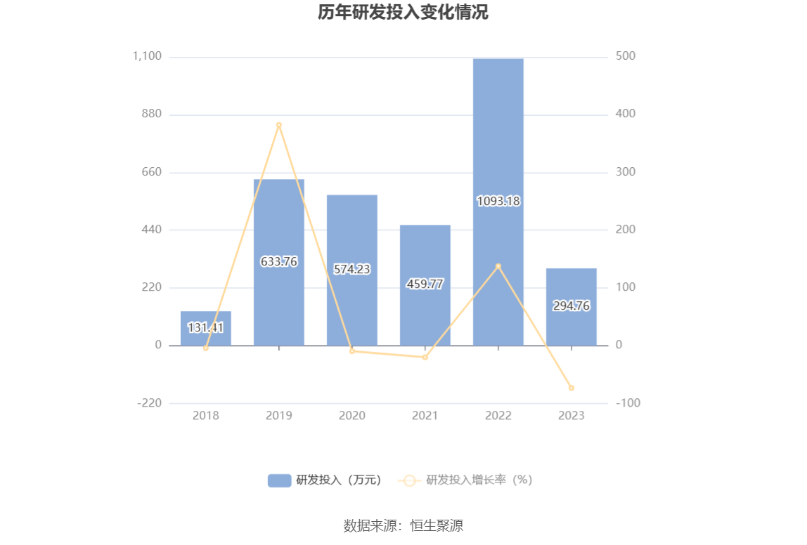 2023年全年,公司研发投入金额为294.76万元,同比下降73.04%;研发投入占营业收入比例为1.07%,相比上年同期下降1.87个百分点。此外,公司全年研发投入资本化率为0。