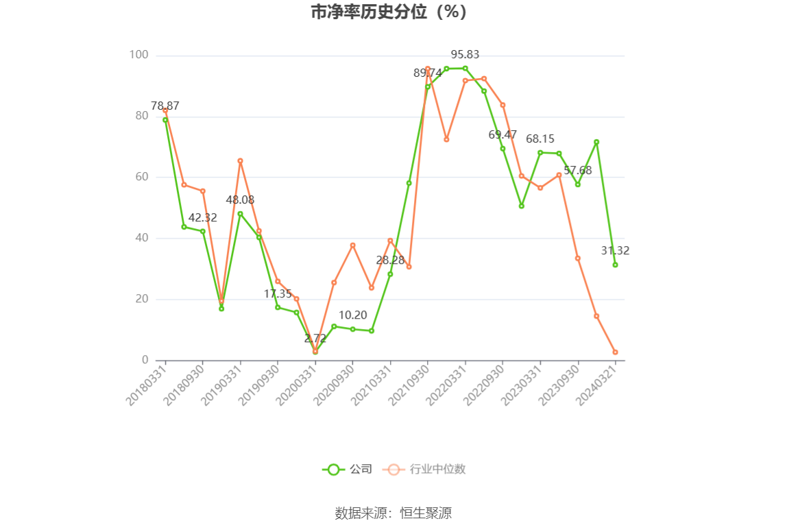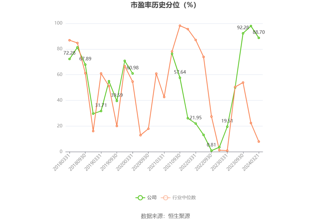 市盈率为负时,不显示当期分位数,会导致折线图中断。