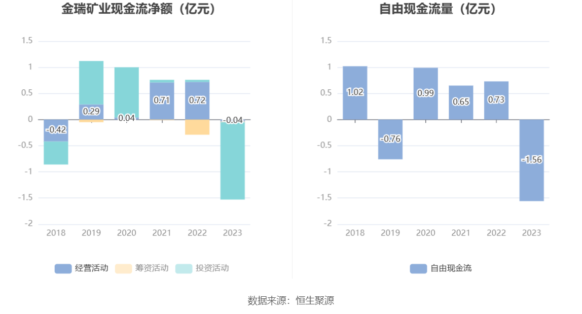 进一步统计发现,2023年公司自由现金流为-1.56亿元,上年同期为0.73亿元。