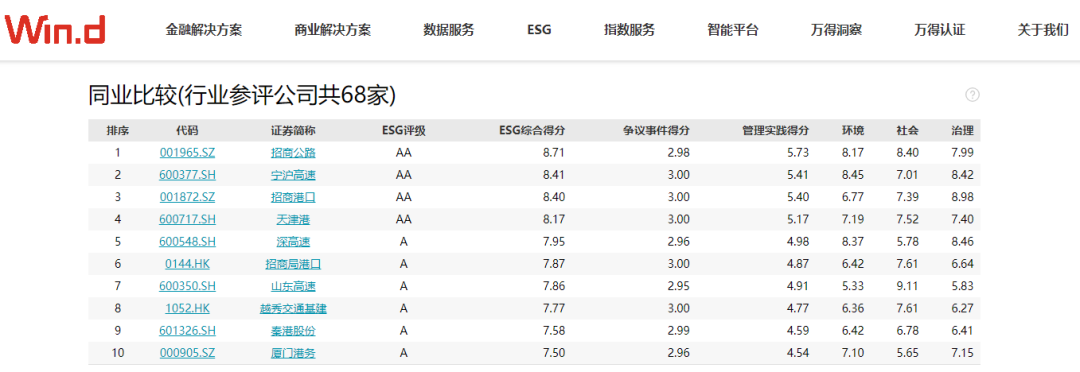 近日,国内权威ESG评级机构万得(Wind)正式公布了天津港(600717.SH)2025年最新年度ESG评级数据,天津港股份公司首次获得Wind ESG AA级评级,ESG综合评分8.17分,位列68家交通基础设施行业上市公司第4位。