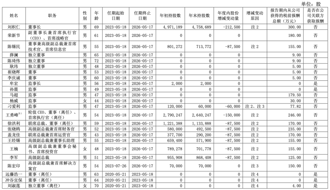 现任及报告期内离任董事、监事和高级管理人员持股变动及报酬情况: