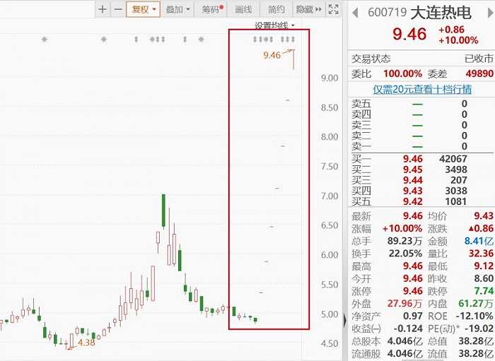 七个交易日,大连热电(600719.SH)股价接近翻倍。