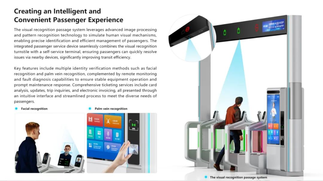 佳都科技积极探索将人工智能技术与城市交通出行场景相结合,开创了以人工智能技术支撑乘客“无感”出行的新生态。在AFC慧捷通设备产品设计的过程中,产品团队围绕“更高的智能化、更便利的用户体验”这一设计理念,利用先进的图像处理和模式识别技术,将综合自助客服与视觉识别闸门无缝结合,有效减少乘客通行的活动路径,显著提高了通行效率和安全性。