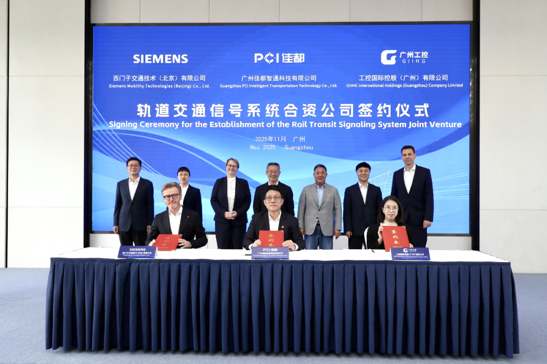 11月14日,佳都科技集团全资子公司广州佳都智通科技有限公司(简称“佳都科技”),与西门子交通技术(北京)有限公司(简称“西门子”)、工控国际控股(广州)有限公司(简称“工控国际”)在广州开发区、黄埔区正式签署合作协议,共同设立轨道交通信号系统合资公司,标志着三方在智慧轨道交通领域的合作迈出了从战略蓝图到项目实体的关键一步。