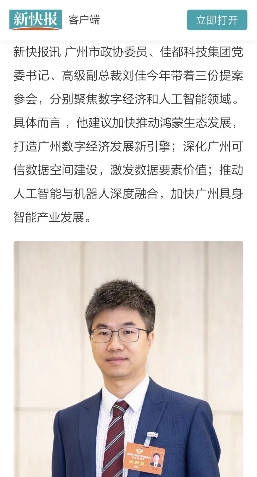 自2022年以新任委员身份履职以来,刘佳委员始终扎根科技产业一线,紧扣市委、市政府中心工作,认真履行委员职责,持续为广州人工智能与数字经济高质量发展建务实之言、献可行之策。他表示,在本届政协履职收官之年,将继续以高度的责任感和饱满的履职热情,全力以赴完成好委员使命,为本届任期画上圆满句点。未来也将继续以产业实践者的身份,长期关注并支持广州的科技创新与高质量发展进程。