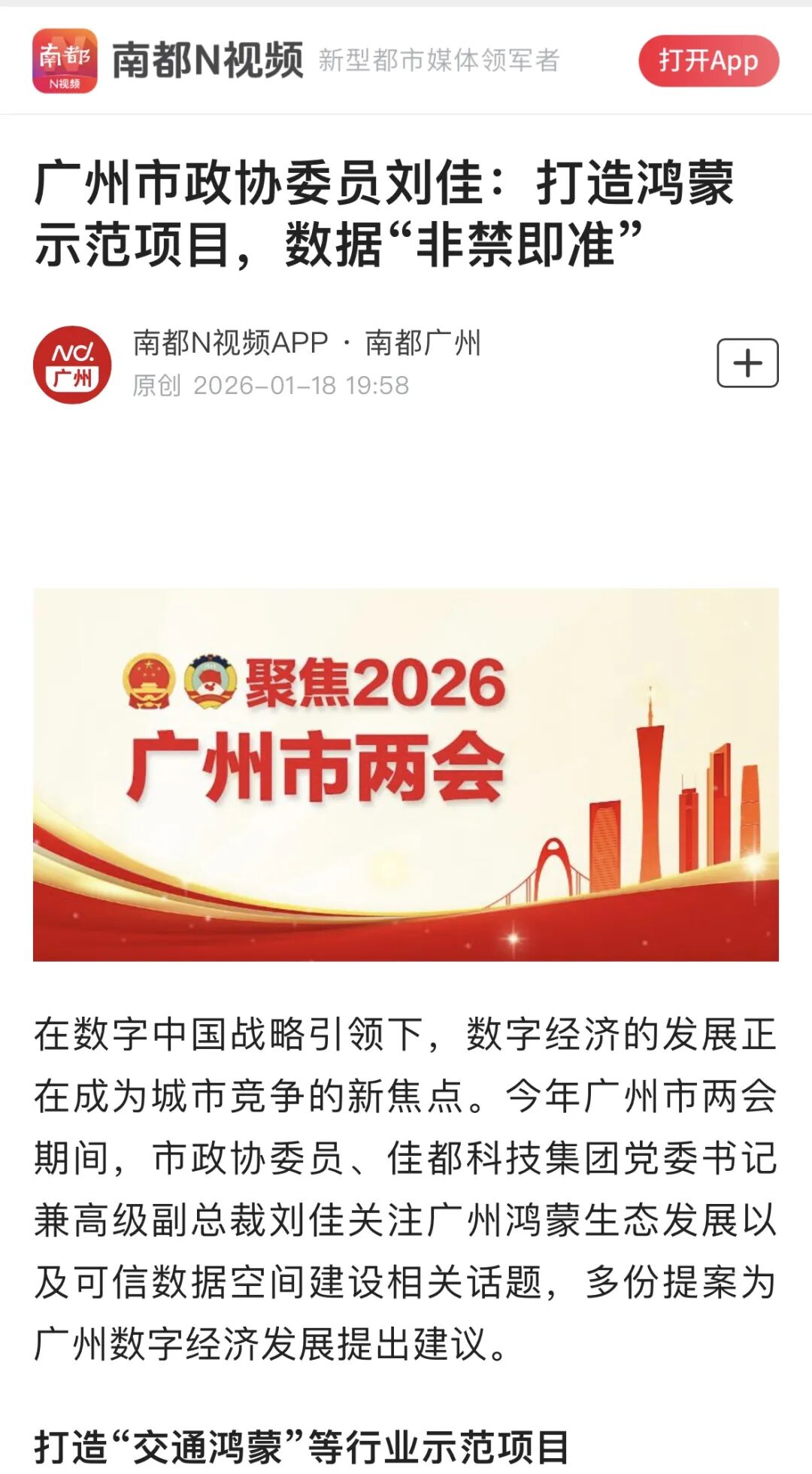刘佳建议,要强化顶层设计与政策引导,构建鸿蒙生态发展有利环境;要推动重点领域设备鸿蒙化,夯实万物智联数字底座,对交通、能源、政务、医疗、教育等领域的存量关键设备,制定分阶段、分批次推进鸿蒙化改造的试点计划;重点建设一批广州鸿蒙示范工程,打造多行业、多场景的“行业鸿蒙”示范应用;推进标准制定产品适配,掌握产业高地;深化产学研用协同,构建多层次人才体系,营造良好开发者生态。