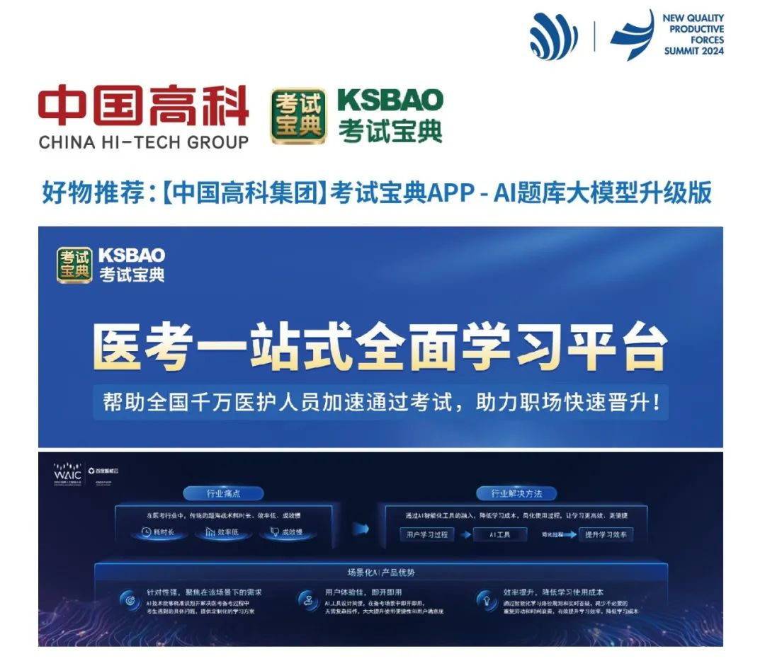 1月8日,第五届国际科创节暨2024新质生产力领航者峰会在北京举行,来自科技、商业、政界、学界等领域嘉宾共同探讨新质生产力带来的机遇与挑战,探寻数智赋能新路径,助力经济和环境高质量发展。中国高科集团凭借在教育领域的卓越贡献和科技创新实力,荣获“2024新质生产力影响力企业”称号,公司核心产品考试宝典APP - AI题库大模型升级版荣获“2024人工智能创新应用奖”。