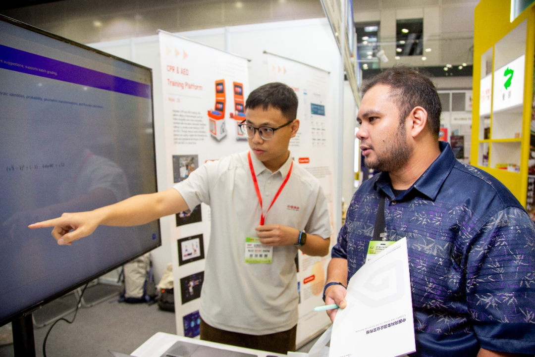 张副部长和孙公参对 英腾教育 参展产品表示肯定,孙公参还建议 英腾教育 的教育AI智能体平台可以尝试在马来西亚华文学校推广。马来西亚多家本地教育、医疗机构也纷纷表示肯定,并希望就产品在马来西亚落地提出了改进建议,希望未来进行深入探讨合作落地。