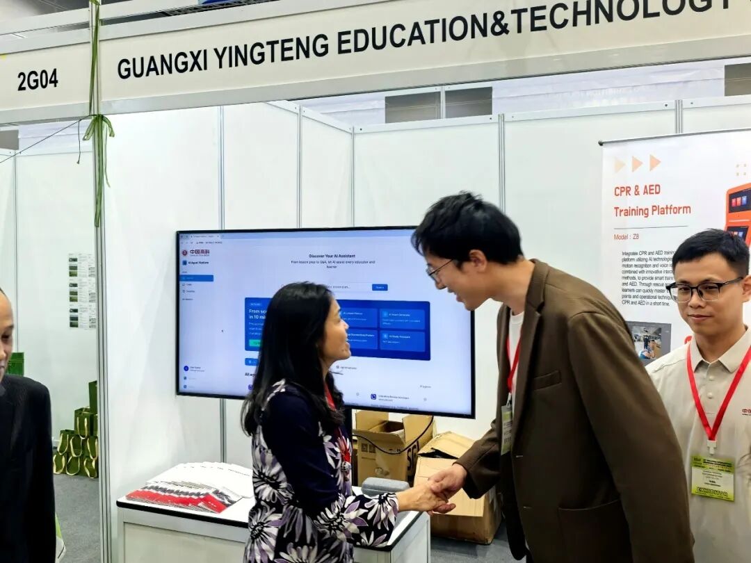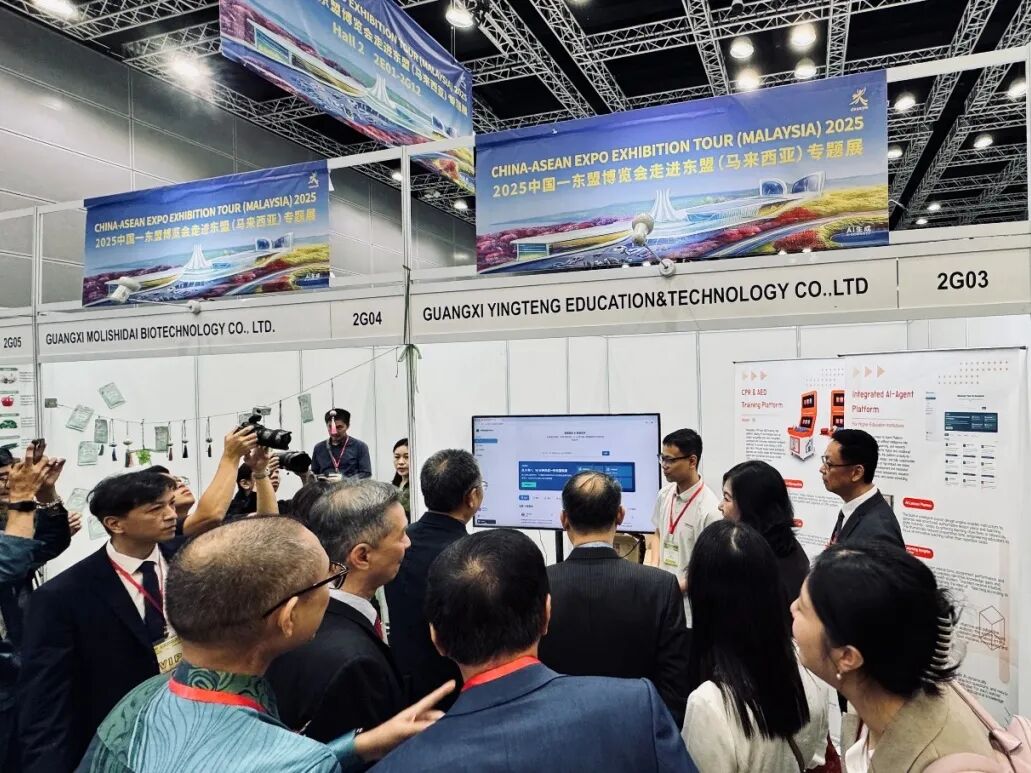12月4日至6日,2025中国—东盟博览会走进东盟(马来西亚)专题展在吉隆坡会展中心(KLCC)成功举办。本次专题展由东博会秘书处主办,旨在助推中马经贸合作,将东博会平台价值延伸至东盟市场,为中国—东盟自贸区3.0版落地生效注入动力。 中国高科 集团旗下子公司广西 英腾教育 科技股份有限公司(以下简称 英腾教育 )作为广西AI科技优秀代表企业,受邀参展,全面展示 英腾教育 在“AI+教育”与急救培训领域的创新成果。