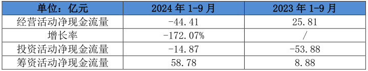 今年前三季度,爱旭股份经营活动的现金流量大幅由净流入转为净流出-44.41亿元,同比下降-172.07%,资金面更趋于紧张。