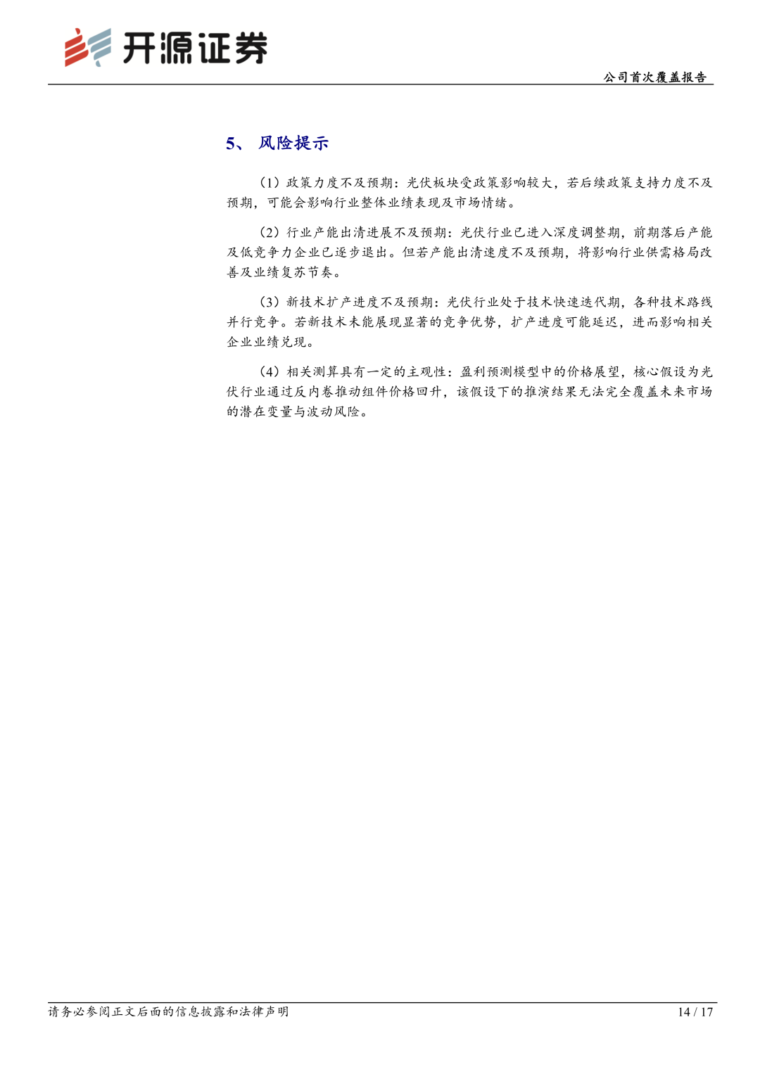 风险提示:政策力度不及预期;行业产能出清进展不及预期;新技术扩产进度不及预期;相关测算具有一定的主观性。