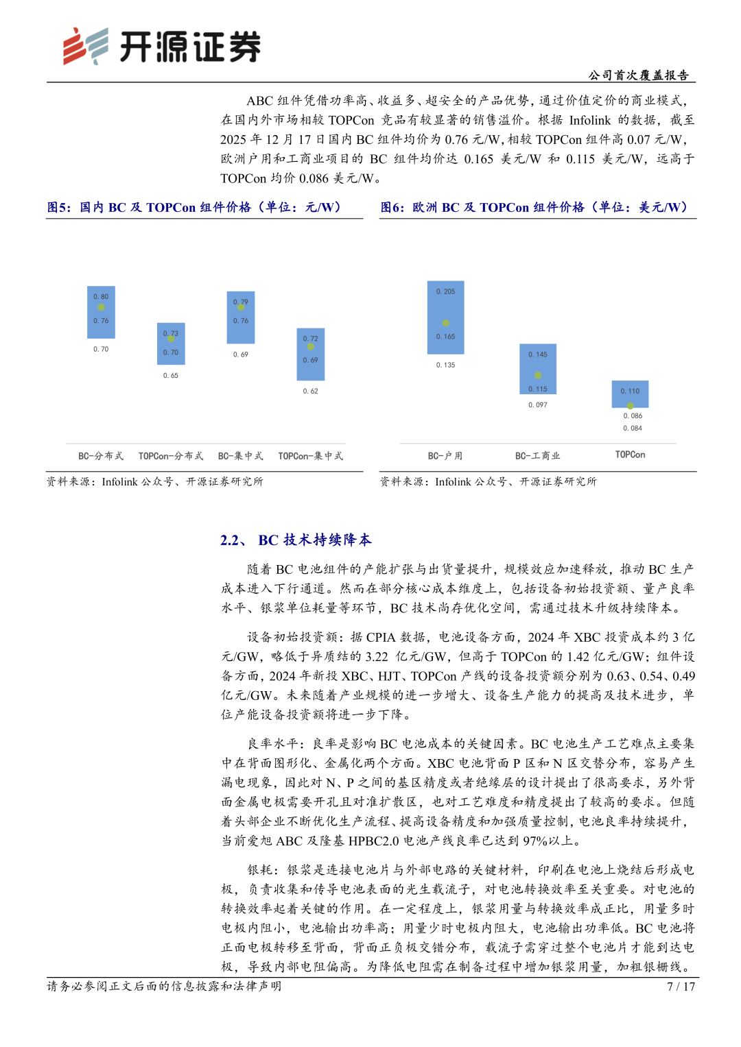BC组件能够同时满足分布式客户对产品美观性和发电性能的双重需求,高度契合分布式应用场景的核心要求。因而BC组件在分布式市场,特别是对产品溢价接受度更高的海外分布式市场,具有明显溢价并有望保持。随着BC电池组件的产能扩张与出货量提升,规模效应加速释放,推动BC生产成本进入下行通道。在光伏制造业面临严重产能过剩的背景下,主要厂商均已基本暂停国内TOPCon路线的新建产能规划,当前仍在进行的产能建设项目主要聚焦于BC技术路线。