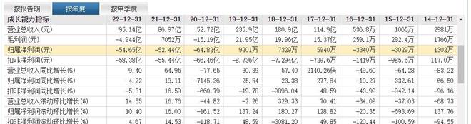 2022年的情况也是很糟糕,好歹营收继续增长,达到95.14亿元,但相较于2021年归属净利润下滑,-54.65亿元——亏损更多。