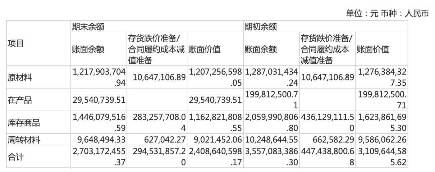 其中,产品、库存商品分别为29.54亿元和11.63亿元,并且公司报告期内还对库存商品计提了2.00亿元的存货跌价准备。