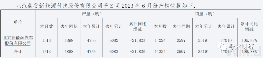 北汽蓝谷新能源科技股份有限公司(简称“北汽蓝谷”:600733)2023年中报显示,共计实现销量35191台,同比增长107%;实现销售收入57.7亿元,同比增长66%。公司旗下主要品牌是极狐阿尔法(S先行版、T森林版、S森林版)和BEIJING(EU7、EU5)。数据显示,上半年极狐系列销量近9000辆,同比增长212%。