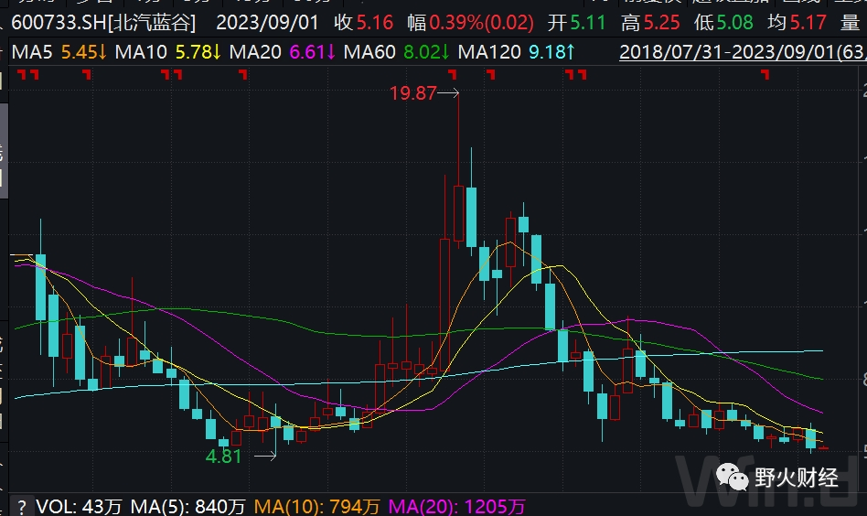 截至9月1日收市,北汽蓝谷股价为5.16元,最新市值288亿元。
