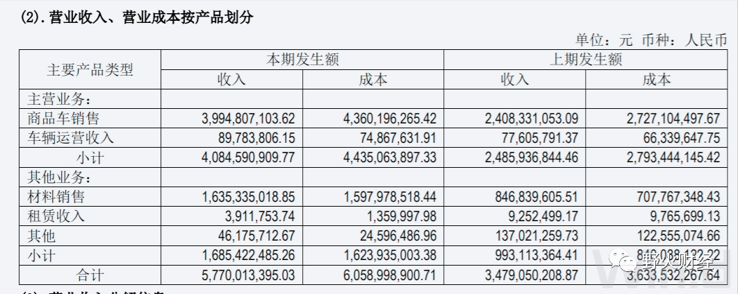 分解一下营业成本,汽车销售板块成本为43.6亿元,即毛利润为-3.6亿元或毛利率为-9%,去年同期毛利润为-3.2亿元或毛利率为13%。其他业务板块毛利率均为正,该公司整体毛利率为-5%,在这种情况下,显然不可能盈利。
