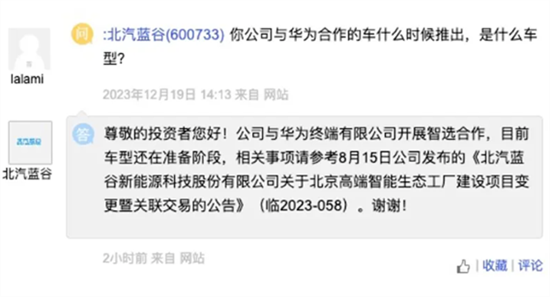 快科技1月22日消息,日前,北汽蓝谷在互动平台表示:该公司与为终端有限公司开展智选合作,目前车型还在准备阶段。