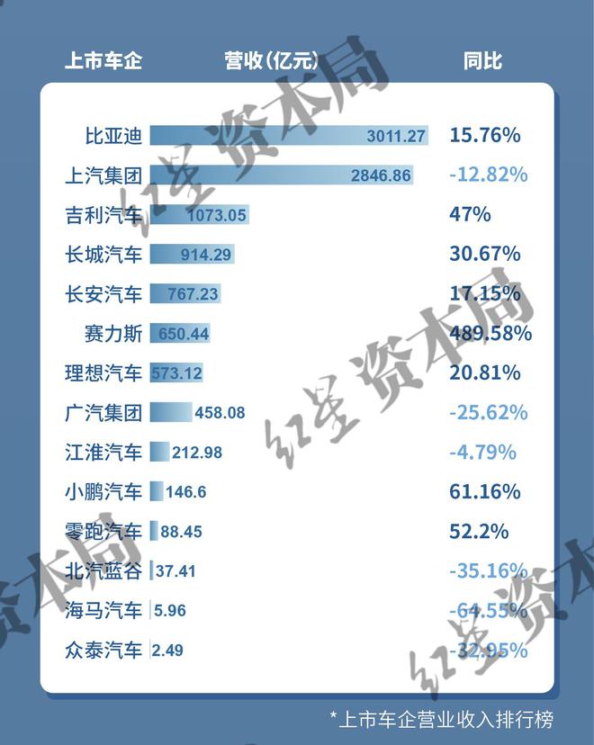 3、10家车企营收超过1000亿元