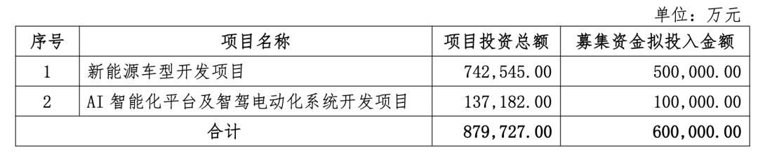 公告显示,本次募资全部用于“新能源车型开发项目”“AI智能化平台及智驾电动化系统开发项目”。