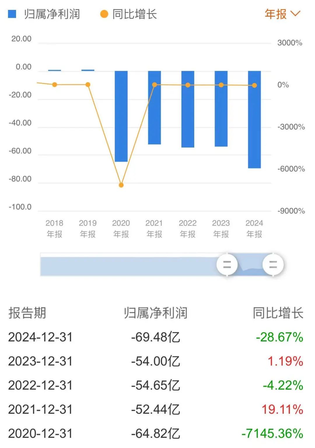 拉长时间线看,2020年至2023年,北汽蓝谷的净亏损分别为64.82亿元、52.44亿元、54.65亿元和54亿元,加上2024年亏损的69.48亿元,5年时间,北汽蓝谷累计亏损295.39亿元。