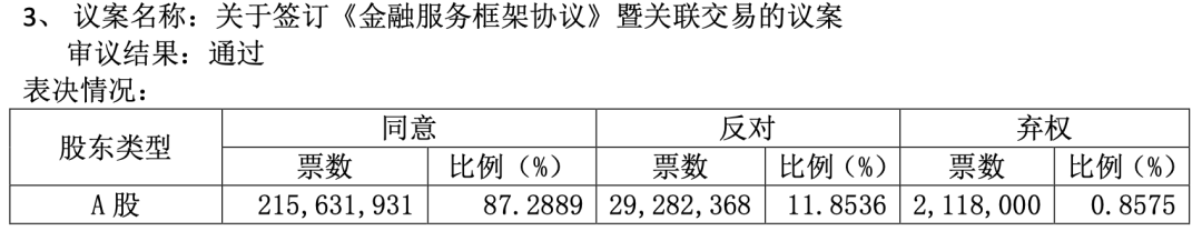 另外,北汽蓝谷2025年第一次临时股东大会决议公告显示,关于签订《金融服务框架协议》暨关联交易的议案,超11%的股东投了反对票。