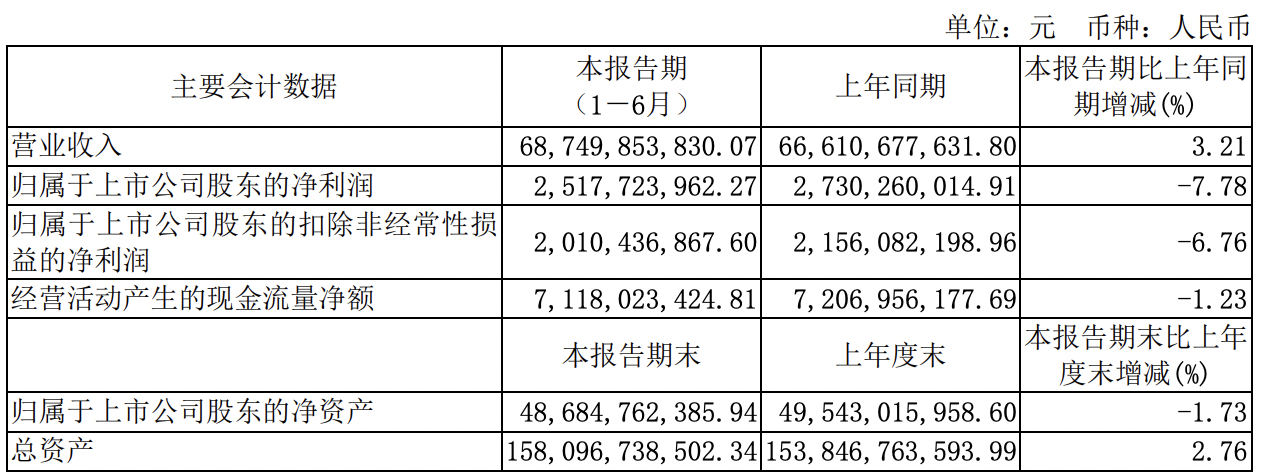 报告显示,2022年上半年,华域汽车实现营业收入687.50亿元,比上年同期增长3.21%;实现归属于上市公司股东的净利润25.18亿元,比上年同期下降7.78%;实现归属于上市公司股东的扣除非经常性损益的净利润20.10亿元,比上年同期下降6.76%;基本每股收益0.799元,比上年同期下降7.74%。