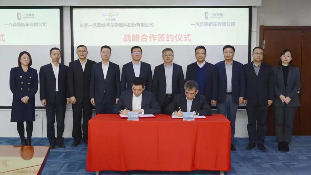 12月14日,一汽富维与一汽奔腾举行战略签约仪式。一汽富维总经理、党委书记陈培玉,一汽奔腾总经理、党委副书记隋忠剑出席会议。一汽富维副总经理江辉与一汽奔腾副总经理、奔腾开发院院长、党委书记金叙龙代表双方签署战略合作框架协议。