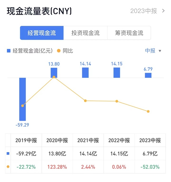 值得注意的是,2023年上半年,华远地产的经营现金流为6.79亿元,与去年同期相比下滑52.03%。