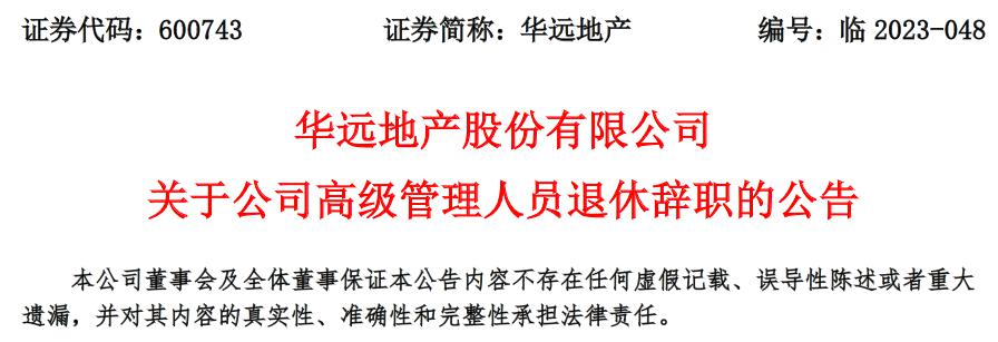 华远地产(600743)于 9 月 28 日发布晚间公告称,华远地产股份有限公司(以下简称"公司")董事会近日收到副总经理王晓昱女士的书面辞呈,因已到法定退休年龄,王晓昱女士申请辞去公司副总经理职务,辞职后将不再担任公司任何职务,且不存在应当履行而未履行的承诺事项。